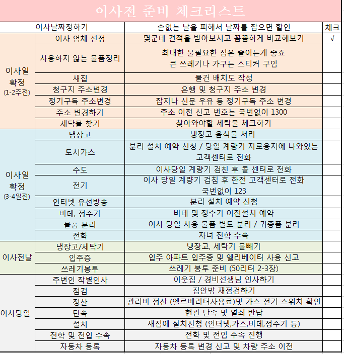 이상으로 전월세 및 이사전 체크리스트를 작성해 보았습니다. 참고하시어 이사 후 마음이 흡족해 지셨으면 합니다.