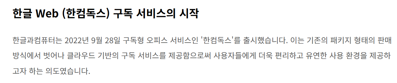 후속정보: 한글 구독서비스를 활용한면 쉽게 온라인에서 편집 및 읽기가 가능합니다